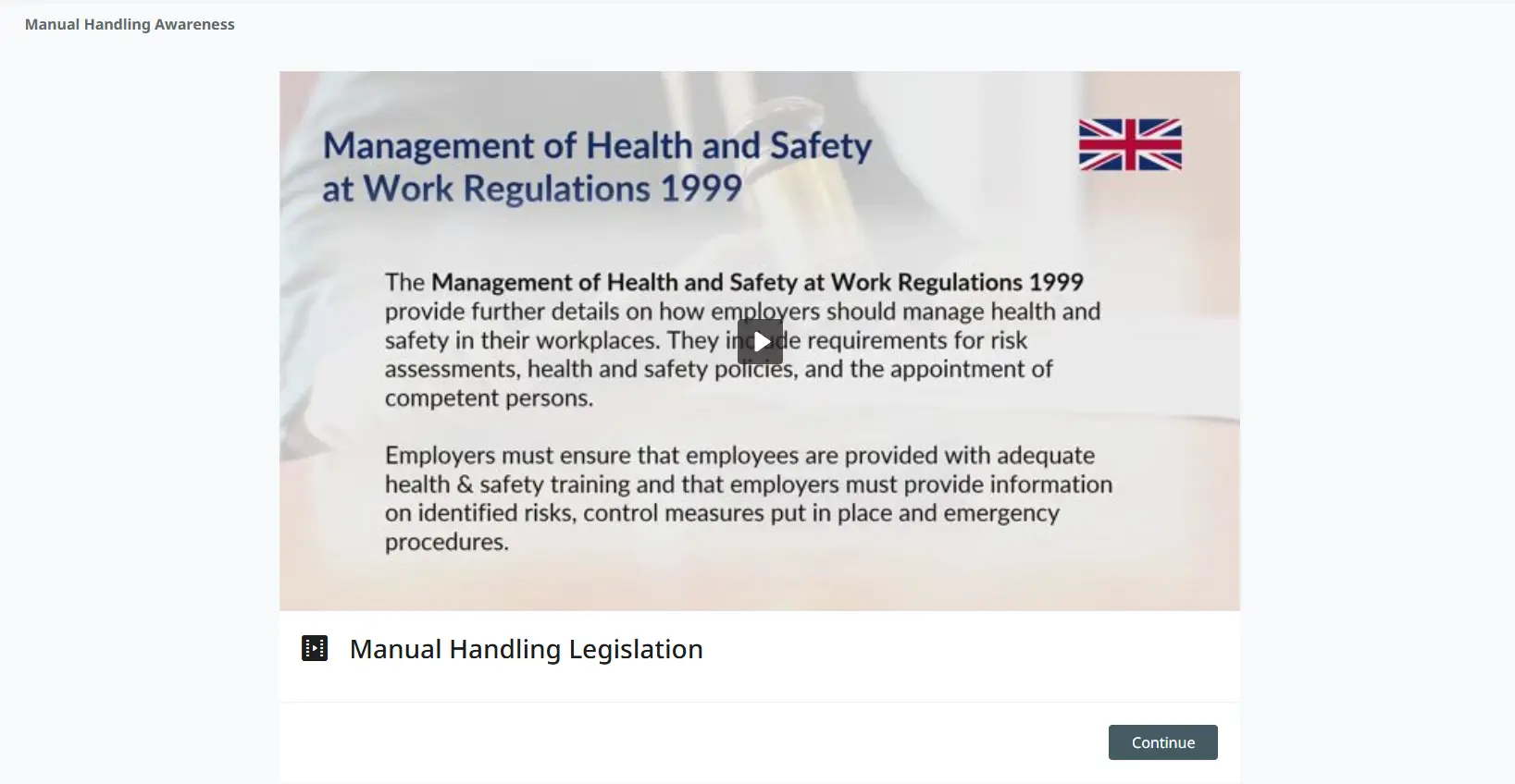 Manual Handling injuries are among the most common types of work-related accidents in the UK. This course is designed to increase employee awareness of Manual Handling risks and provide practical advice on how to keep safe at work.