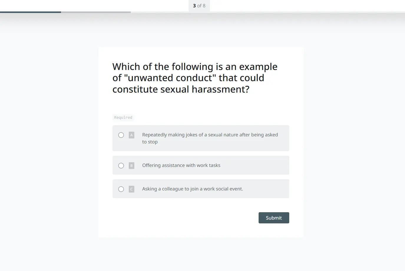 - Identify situations that are considered sexual harassment.